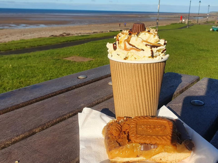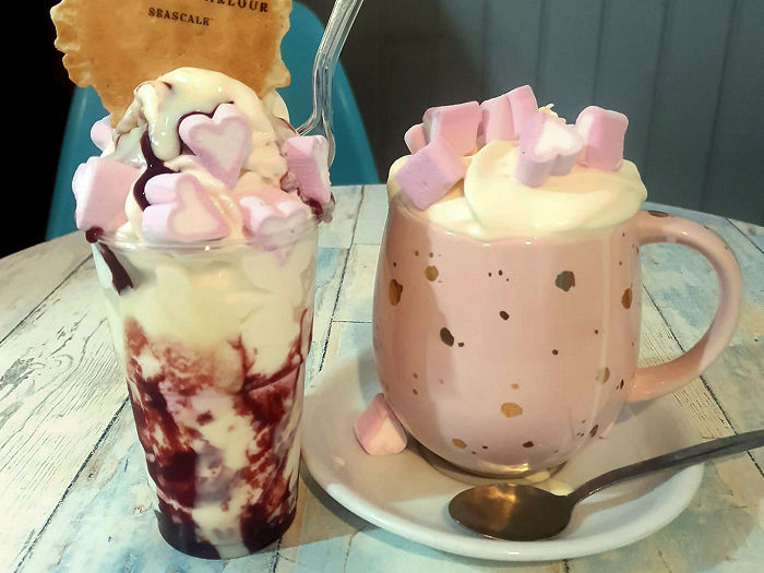 Hot Chocolate available with cream, cream and marshmallows, cream and flake.